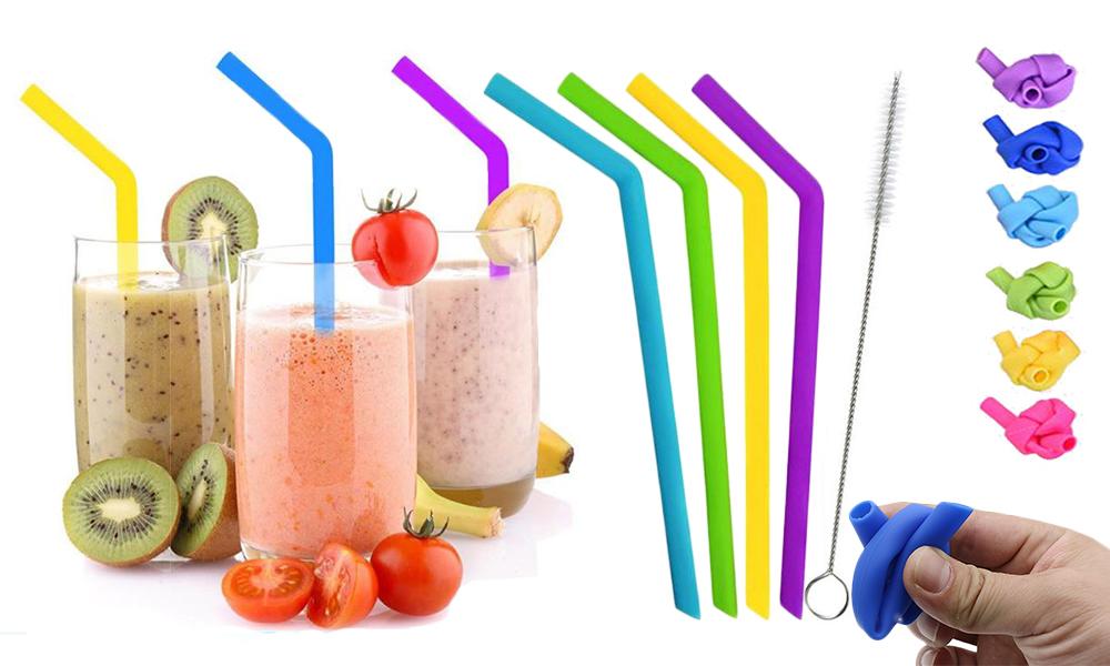 Featuring assorted bright colours, these reusable silicone drinking straws are easy to clean with the supplied brushes