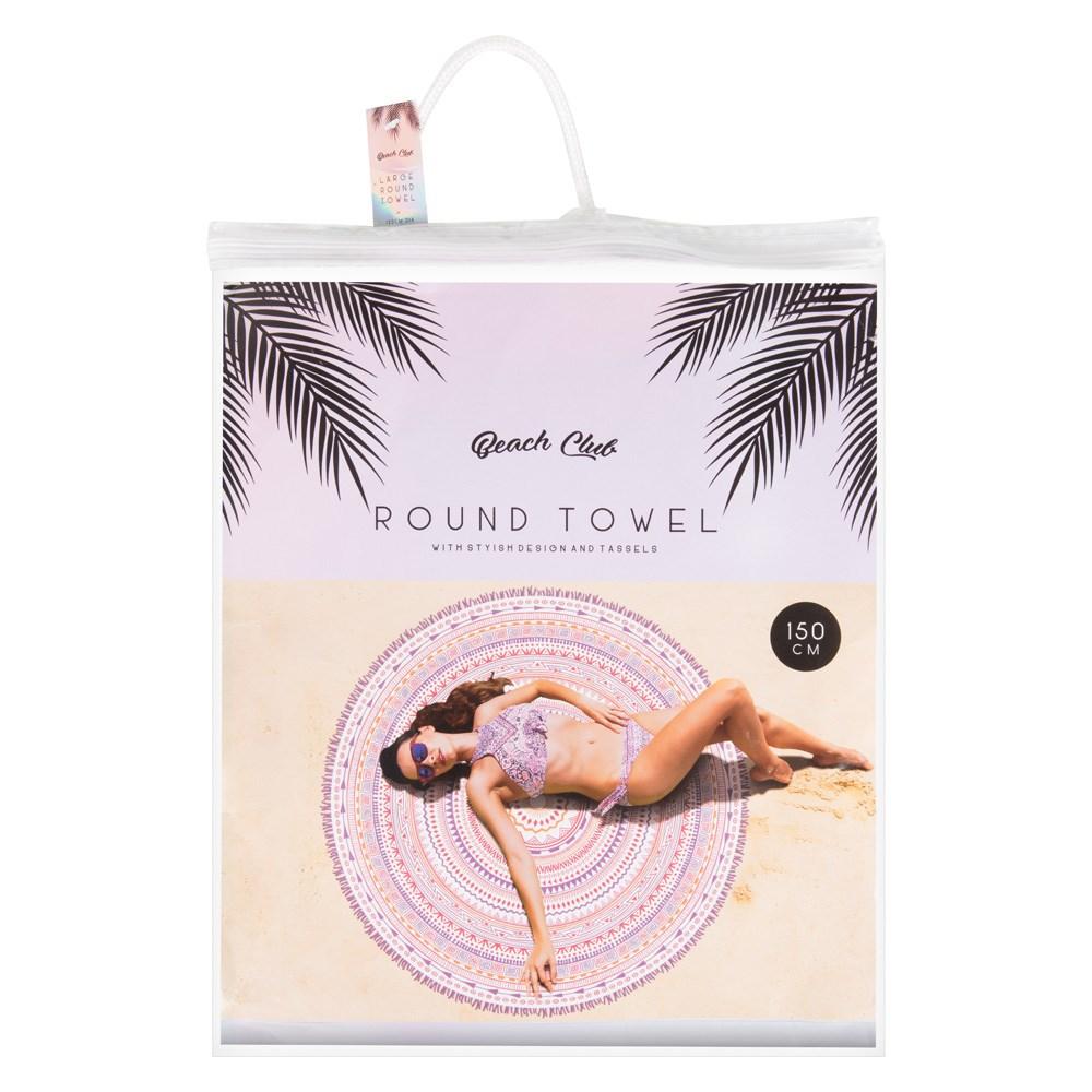 Round Beach Towel is made of high-quality material. The soft towel features a stylish design and a tassel fringe. The towel opens out to a diameter of 150cm.